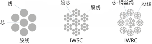 1.IWSC(獨立鋼絲股芯): 股芯由與鋼絲繩外股相同材料的股線構(gòu)成。這些股線以3×7、7×7和7×19等配置組合在一起。這種結(jié)構(gòu)可作為通用的機械元件而使用,具有良好的軸向剛度和彎曲彈性。