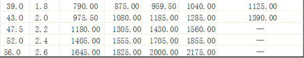 一般起重作業(yè)可采用GB/T8918-1996《鋼絲繩》中6×19和6×37鋼絲繩,其規(guī)格參數(shù)見(jiàn)下表: