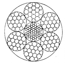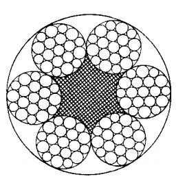 鋼絲繩如圖所示,左圖代表麻芯鋼絲繩6*19W+FC、6×19W+FC,右圖代表鋼芯鋼絲繩6*19W+IWRC、6×19W+IWRC