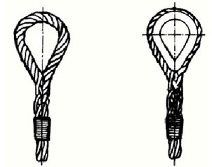 將繩股末端反向插入鋼絲繩主體內(nèi),在鋼絲繩端部構(gòu)成一個(gè)環(huán)孔或環(huán)眼(見圖1、2)。