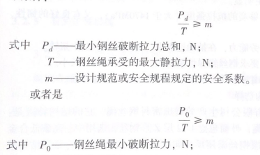 (4)與機械零件不同,鋼絲繩是由許多鋼絲及繩芯組成的構(gòu)件,經(jīng)過使用一段時間之后開始陸續(xù)斷絲,安全系數(shù)逐漸降低。因此,只有鋼絲繩達到報廢標(biāo)準(zhǔn)時的安全系數(shù)才具有實際的意義。