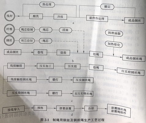 制繩用鋼絲及鋼絲繩生產(chǎn)工藝過程如圖2-1所示。