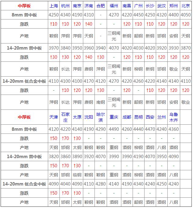 10月9日中厚板價(jià)格:穩(wěn)中上漲;