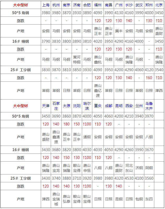 都漲了!10月9日全國各品種鋼材價(jià)格來了
